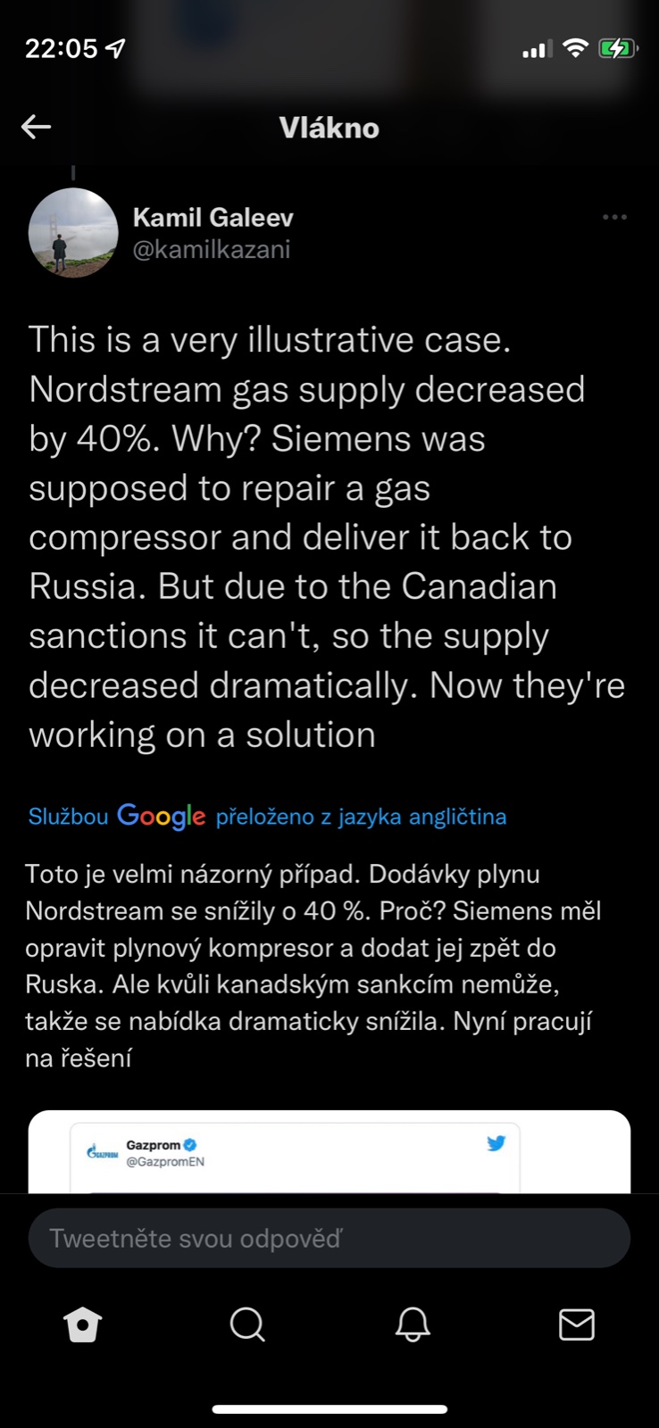 Máme se na co těšit: Lukáš Kovanda:Snížení dodávek plynu z Ruska do Německa a asi i do Itálie, k němuž nyní dochází, je prý politicky motivované. Říká to německý ministr hospodářství Habeck. Gazprom výpadek dodávek svádí na technické problémy. Kreml zřejmě rozehrává další hru, aby trh EU s plynem udržel v napětí.