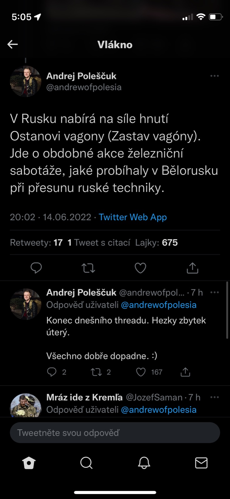Tvl. a on musí řešit tohle, jsi tady, protože chráníš svoji zem, svoje lidi. Drsná věta, včera jsme zničili hodně jejich živé síly a i techniky. Na druhé straně Rusové jsou také lidé, do první linie Putin poslal umřít mladé kluky, co se dali do armády, protože v některých ruských oblastech je fakt bída a žádná perspektiva zaměstnání. Občas, co uniknou nějaké zprávy, tak ty lidi ani nevěděli kam jednou, kde jsou. To musí být drsné procitnutí jít válčit s mizerným vybavením a zjistit, že jsi živý štít, že tě Putin poslal umřít a že jsi nikoho od nacismus neosvobodil, protože tam žádní nacisti nejsou. A to všechno proto, že někdo se chová jako kretén a musí se zapsat do dějin.