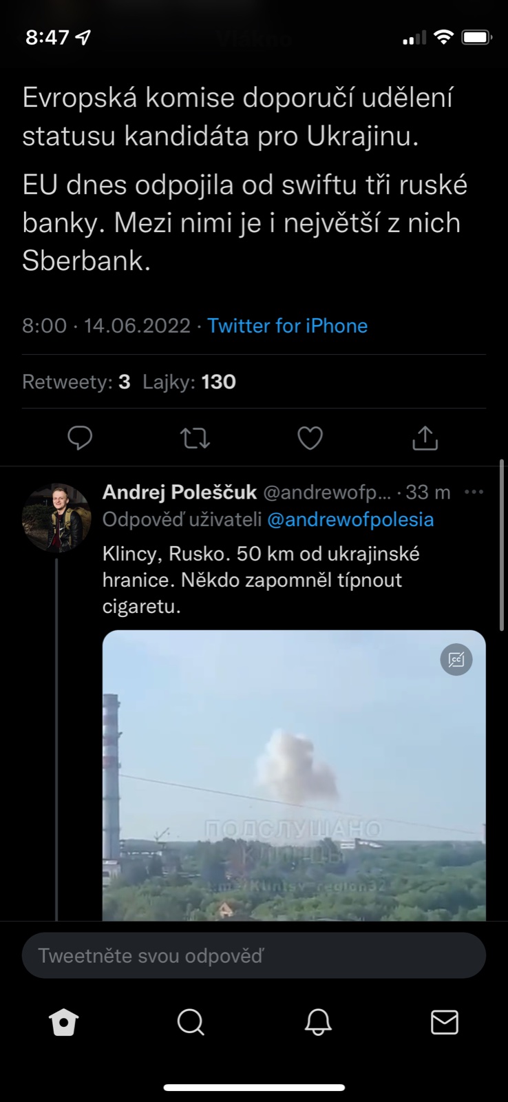 Zprávy od navrátivší se ze Lvova: doma je to úplně jiné než v únoru. Obchody bývaly zasobene úplně stejně kvalitně jako v ČR, teď jsou poloprazdne, zboží není jak transportovat. Je to velký nezvyk. Vše je velmi drahé, i napr. zelenina, která je tuzemská.