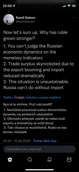 Narazila jsem na rozbor proč rubl roste a vypadá to “pro nás jako západ” beznadějně. Tady je par zajímavých myšlenek a úvah, snad to bude dávat smysl i když to není všechno.)