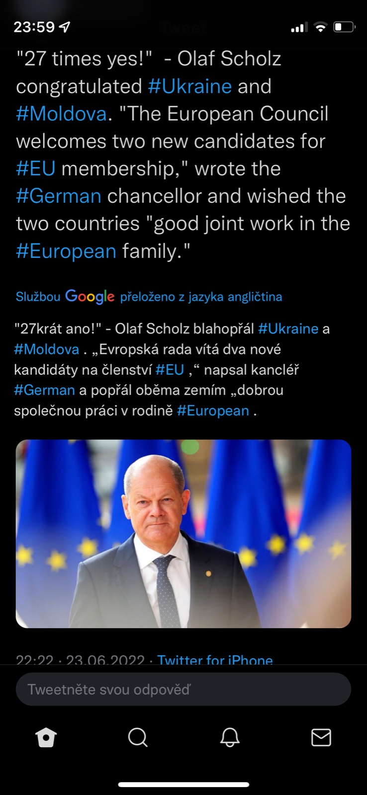 Evropská rada udělila status kandidátské země EU Ukrajině a Moldavsku.