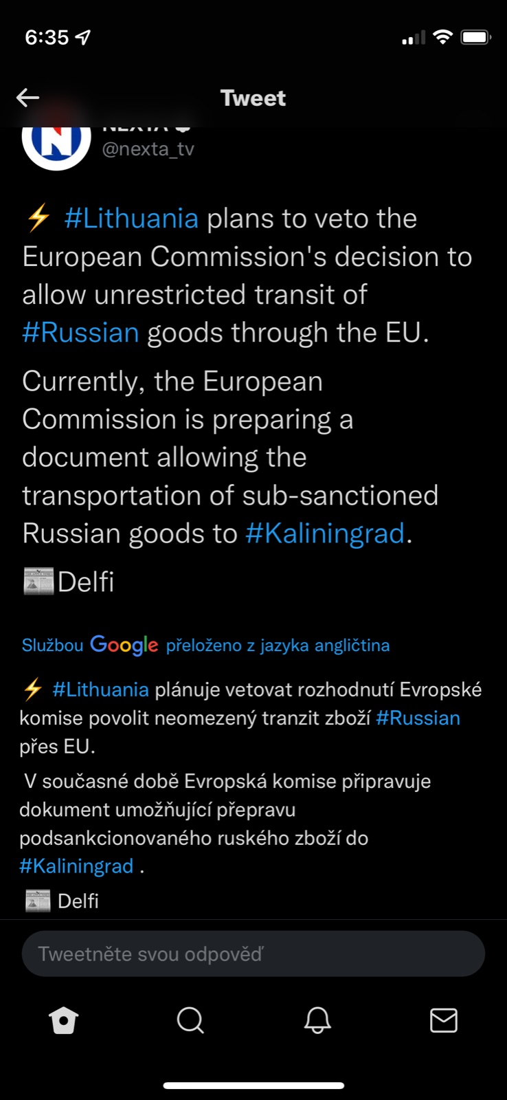 @pampeliska1313 urcite to s novinari tajne diskutoval, aby vynesli tu "tajnou informaci" a Litva se zalekla a prestala jim blokovat dodavky. Coz znamena, ze blokovat je dal he to nejlepsi, co muzou udelat - zjevne to fakt boli 😁😇. Ale Litevci jsou silni stejne jak Ukrajinci, ti se hned tak z neceho nepo💩. Jsem klidna, doufam, ze nebudu neprijemne prekvapena.