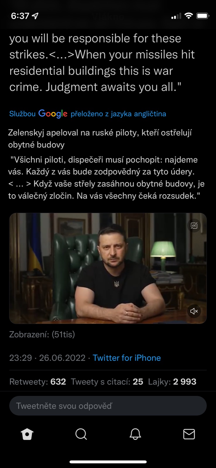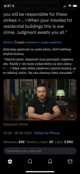 Hadí ostrov: Dnes se na internetu objevilo video z útoku na Hadí ostrov. Video je pořízené z dronu Bayraktar TB-2, ale není z něj jisté, jestli dron sloužil jako nosič zbraní nebo pouze naváděl rakety vystřelené z pevniny. Zároveň je třeba říci, že ač včerejší zprávy o mohutném útoku na ostrov ze strany Ukrajinců a zprávy Rusů o sestřeleném Su-25 a desítce raket budily dojem, že se jednalo o velkou akci, z videa se zdá, že šlo o útok poměrně malého rozsahu omezující se na přibližně deset raket. Zatím jediná identifikovaná ztráta Rusů na ostrově je systém protivzdušné obrany krátkého dosahu Pancir, na přesnější informace si zatím budeme muset počkat.