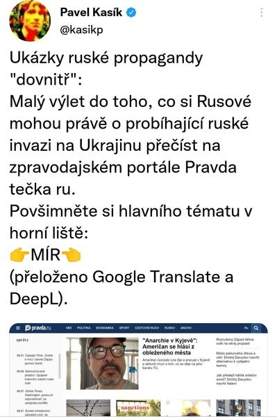 Na druhou stranu, špatná zpráva je z toho všeho je, že se Rusové evidentně budou snažit dostat tanky a těžkou techniku do Kyjeva, což by bylo výrazně destruktivní pro město a civilisty - říkal taky ten komentující na Radiožurnálu (mrzí mě, že mi uniklo, kdo to byl).