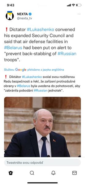 @elencze Co rikal ten kolega, tak Belorusko je proste pod Ruskem. Loutky. Takze se muze klepat jak chce, ale bude poslouchat.