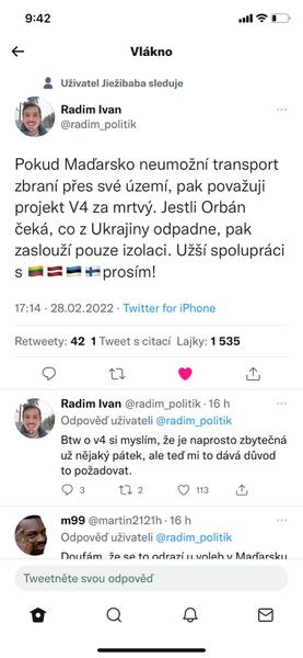 @magicaetezzz Poslouchám Radiožurnál. Na pozadí k práci, takže ne na 100% a nevím, kdo přesně mluvil. Ale rozebíral tam právě tuhle kolonu. Jedním z důvodů jejího zformování by prý mohlo být to, že v Ukrajině už rozmrzá půda a tanky a těžká technika tudy neprojedou, musí využívat jen zpevněné silnice. Pro Rusy to není dobře. Ukrajinská strana je prý výborně informovaná a dá se předpokládat, že se bude pokoušet kolonu zničit, přičemž by se mohly uplatnit ty turecké drony. Komentoval tam ještě to, že na kolonu se obvykle útočí na začátek a na konec, což jí nejúčinněji ztíží další pohyb... Jen velmi volně a určitě nepřesně převyprávěno, ale dalo mi to naději. Tak doufejme.