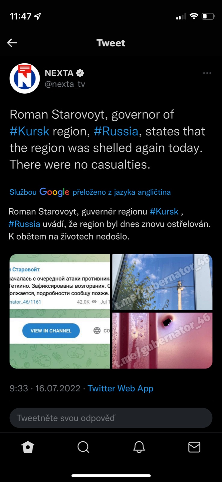@pampeliska1313 Jj, to jsem četla. I s tím včerejším útokem je jasná souvislost. Jen mě napadlo, jestli třeba nemají nějaké konkrétní informace (ale já jsem černá kronika, no 🤷).
