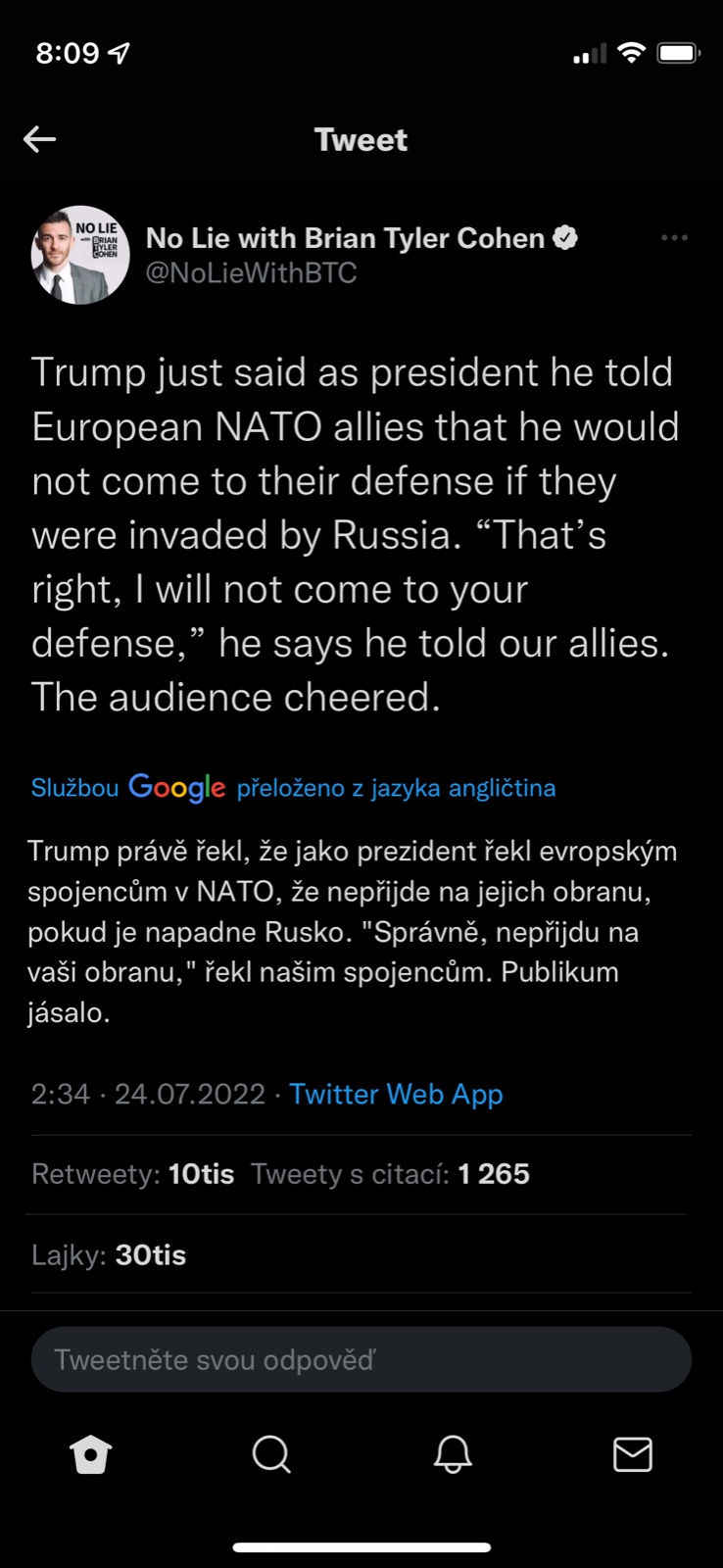 Čímž se Trumpa nezastávám, jeho zastáncem opravdu nejsem, ale ty tendence místními médii překrucovat původní obsah jsou až zarážející.