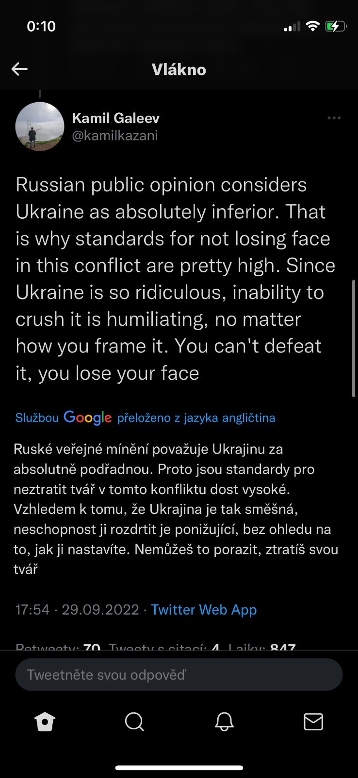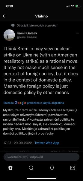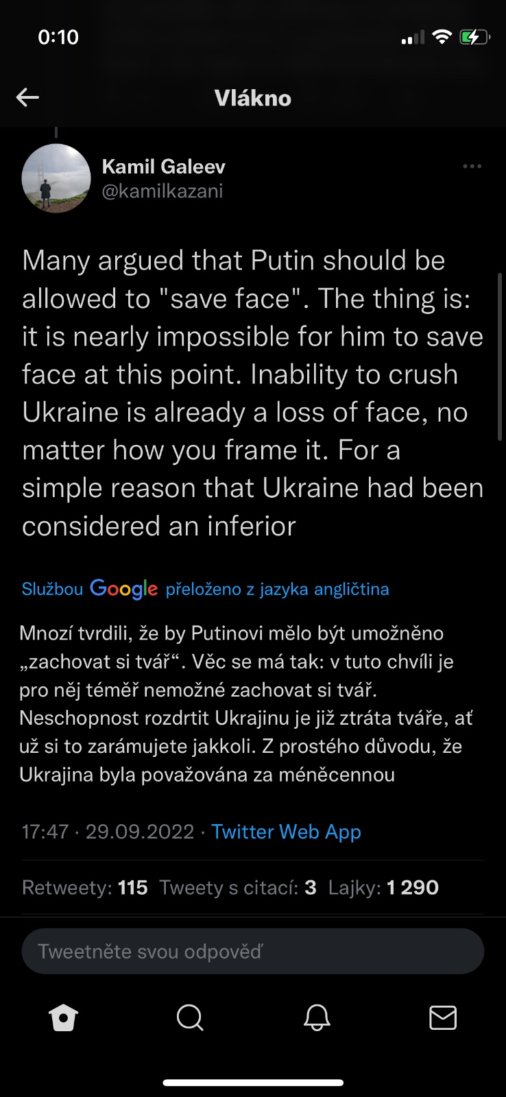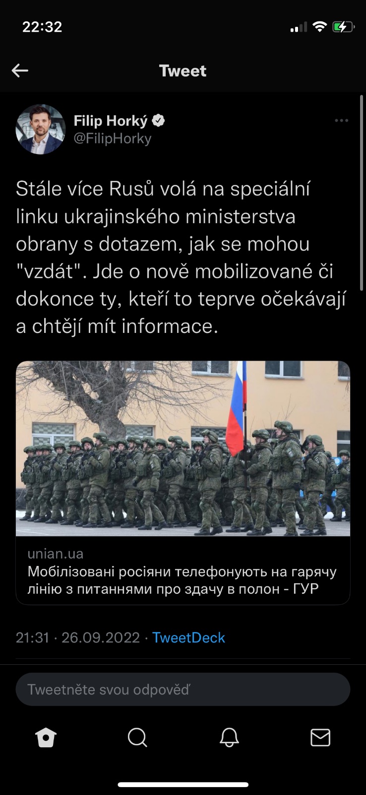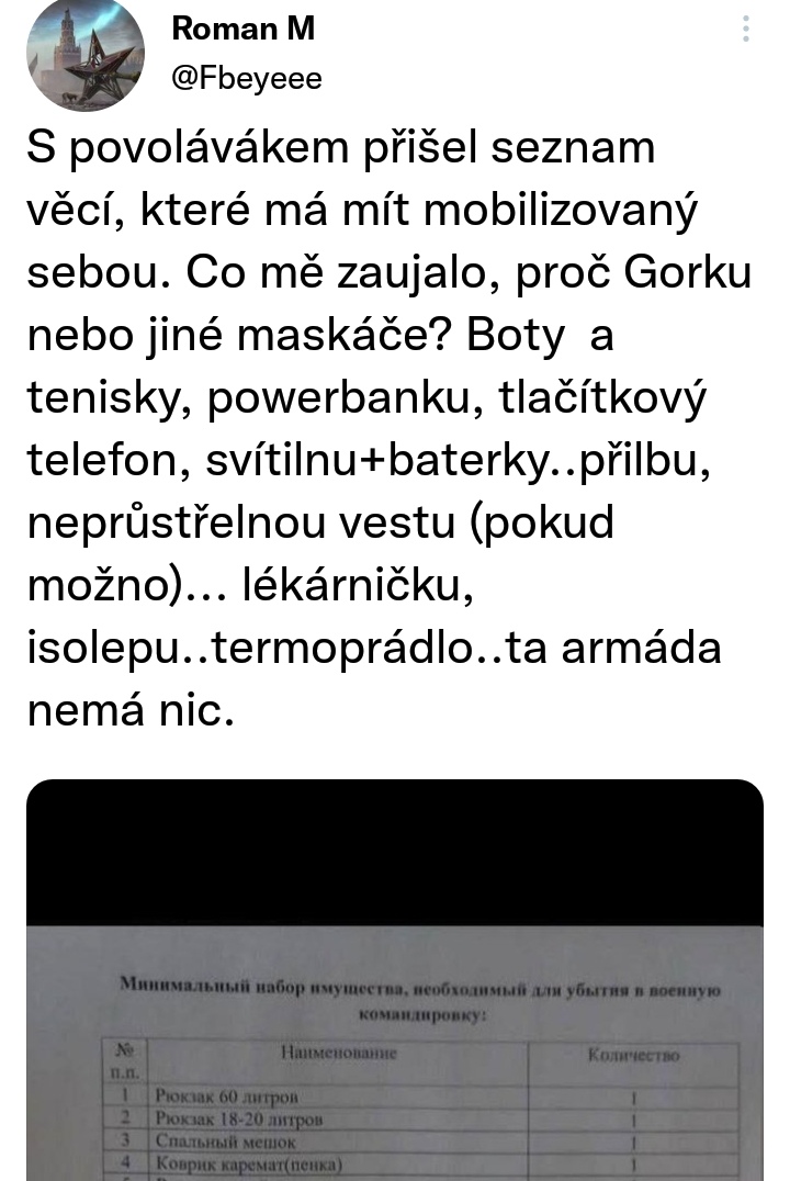 Připravil jsem pro vás jeden překlad. Je to z vojenské základny, kde velitel říká, že vlastně nic neví a že je sám zdravotně nezpůsobilý. https://twitter.com/andrewofpolesia/status/1575...