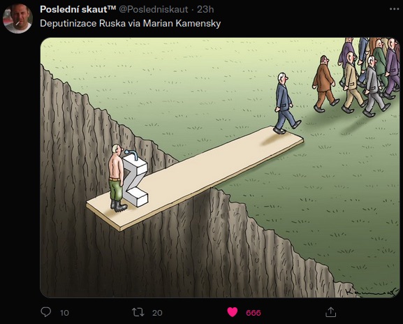 V obrovském kontrastu proti němu je ten russkej sráč, který posílá na smrt statisíce mladých kluků a je mu všechno jedno. Totální neúcta k životům svých lidí.