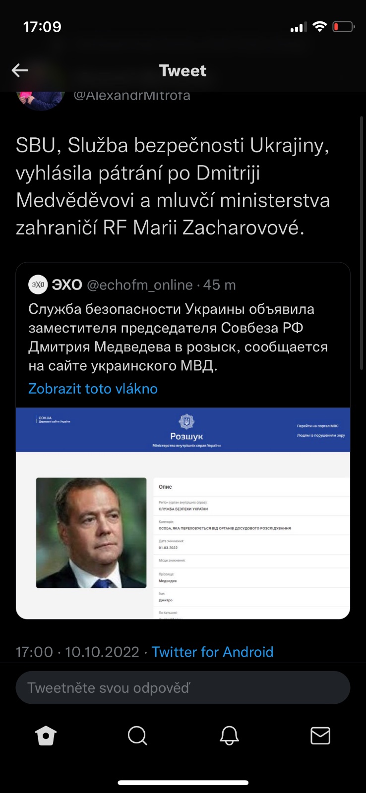 @pampeliska1313 a co znamená pátrání po Medveděvovi? Jakože se ztratil? Nebo po něm jdou jako po strůjci útoků? Z tohodle jsem zmatená...