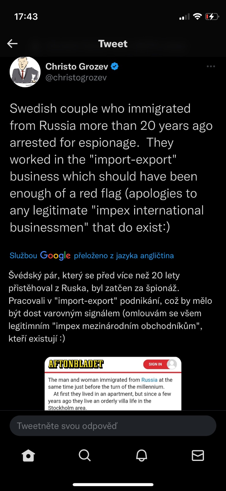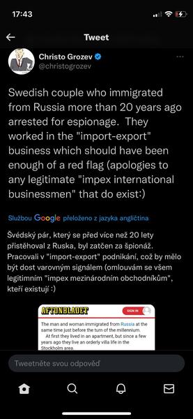 @brunetka11 Pár let zpátky i Německo, si pamatuji, jak jsem o tom četla článek v Respektu. Jak oni byli tajní agenti vycvičení KBG, dostali se do Německa přes jiný státy ještě před pádem Železné opony a pravidelně hlásily informace do Ruska, pokračovali v tom pořád, doma měli tajnou místnost, ze které posílali zprávy. Je deportovali, dcera mohla zůstat a psychicky se z toho zhroutila...
