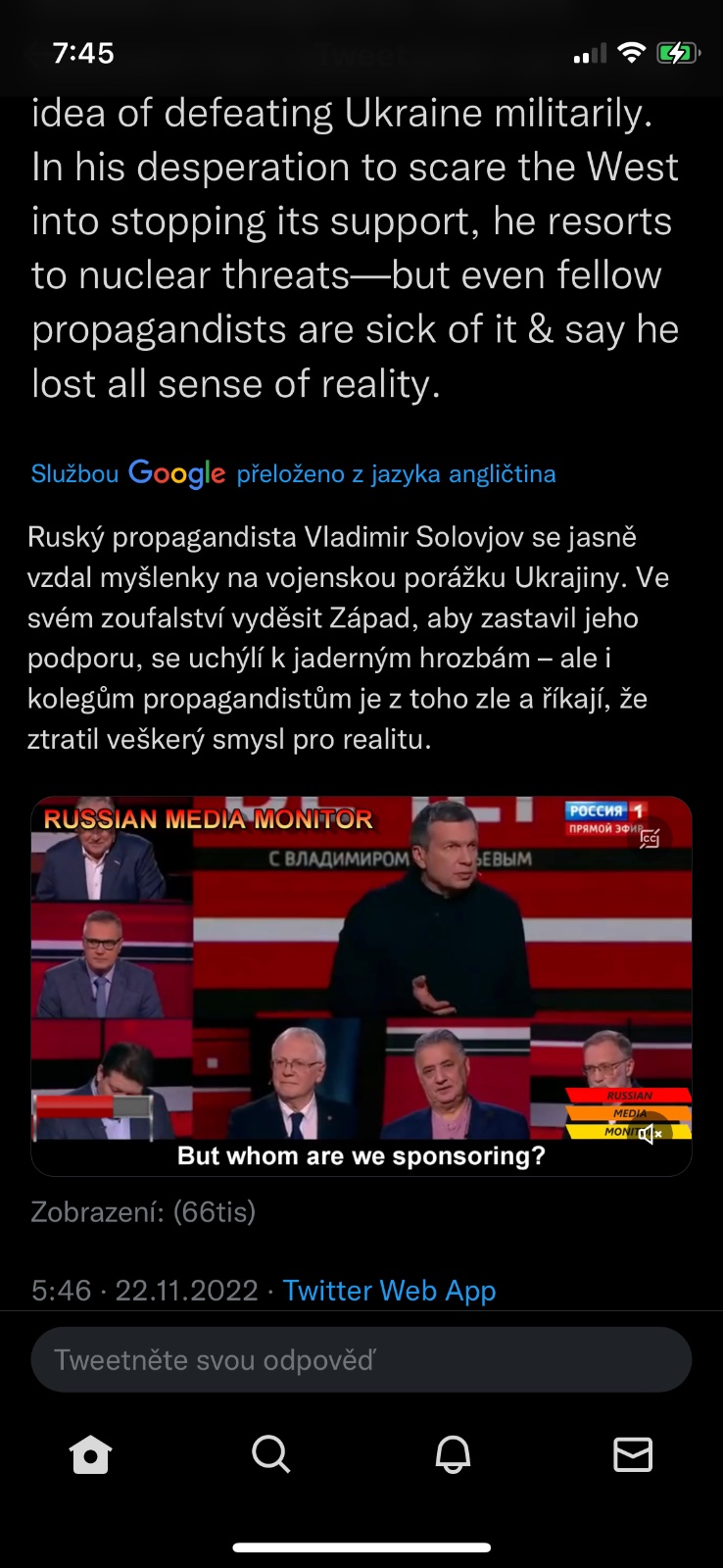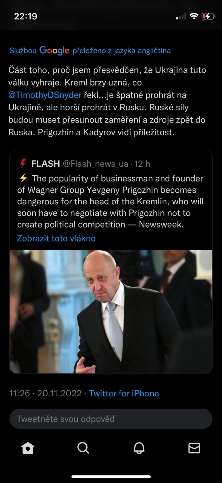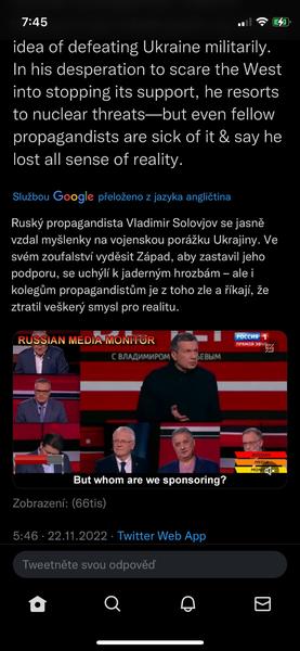 .....Pád ukazuje, že Rusko není nedotknutelné. Pokud si Putin myslel, že anektuje čtyři ukrajinské oblasti a Kyjev to nechá být, protože bude mít obavu z ruských jaderných zbraní, tak se znovu přepočítal........