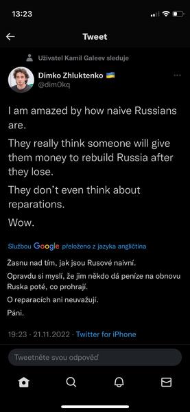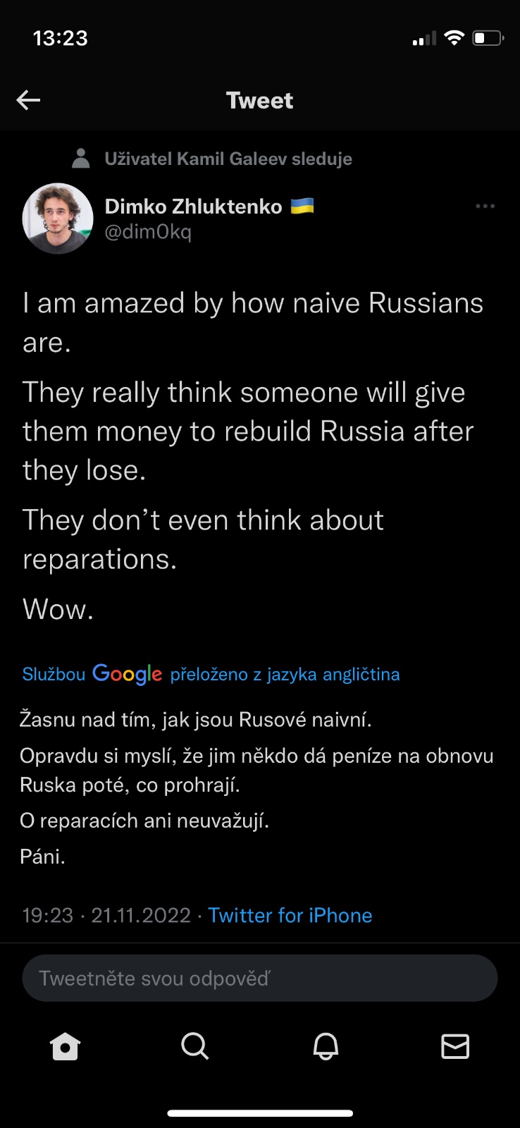 @pampeliska1313 otázka, jestli po něm nebude stejnej nebo ještě větší zmetek. Já nevím, jak z Ruska vydolovat mír, když kašlou na veškerý dohody.