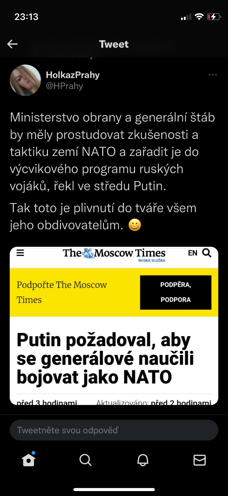 @levandule_k ja si prave taky rikala cim tam jako chteji zautocit! Ale mozna si posledni zbytky nekde skudlej pro Moldavsko a zacnou ted rikat, ze cilem specialni operace nebylo dobyt Ukrajinu, ale jen si umest cesticku do Moldavska...a budou doufat, ze Moldavci nejsou tak badass a poddaji se rychle...