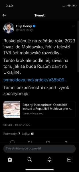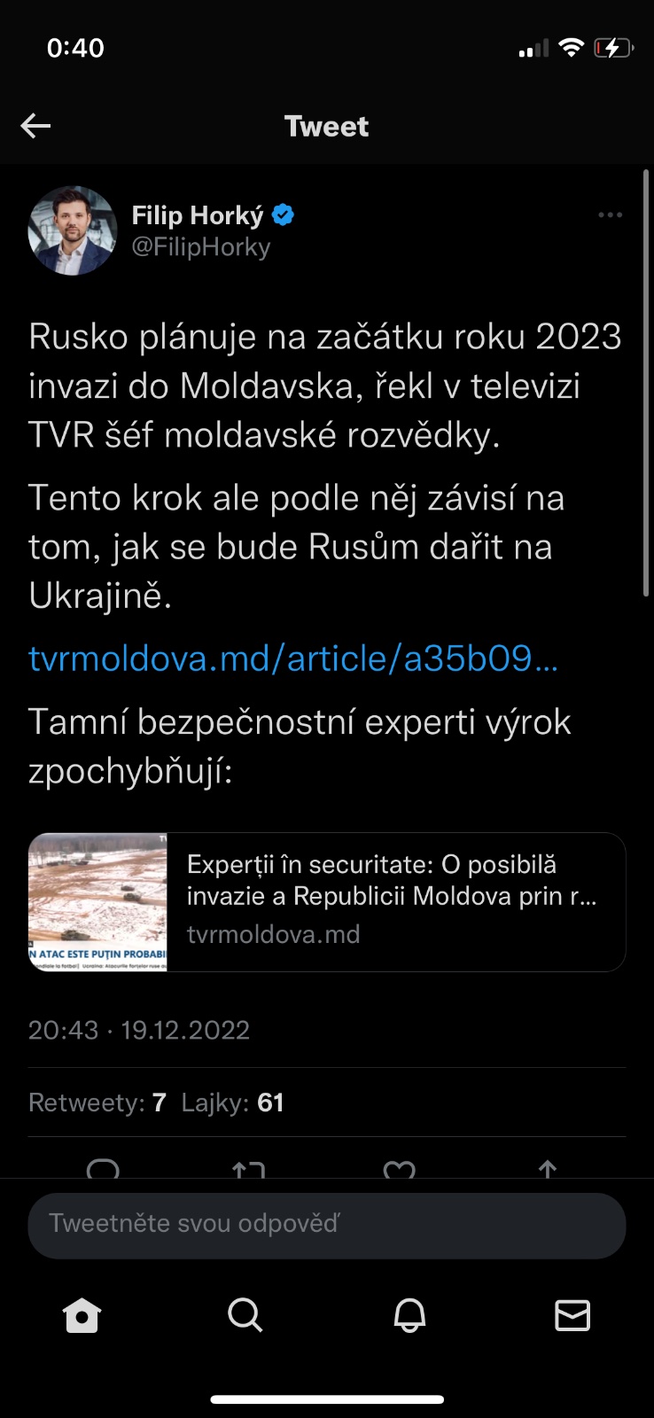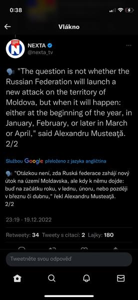 @levandule_k záleží na Ukrajině. Hrozbu vnímají jako vysokou, mají v plánu kdyžtak požádat o pomoc nějakou jinou zemi, to si už nepamatuju, nicméně sleduji situaci. Údajně by Rusové mohli využít Podněstri kde mají muniční sklad. Takže jsou oprávněně v obavách a sleduji vývoj konfliktu, aby kdyžtak byli připraveni.
