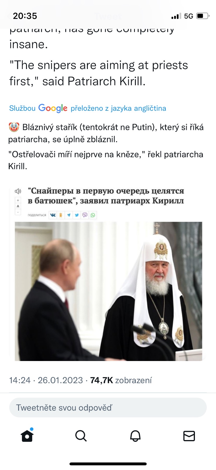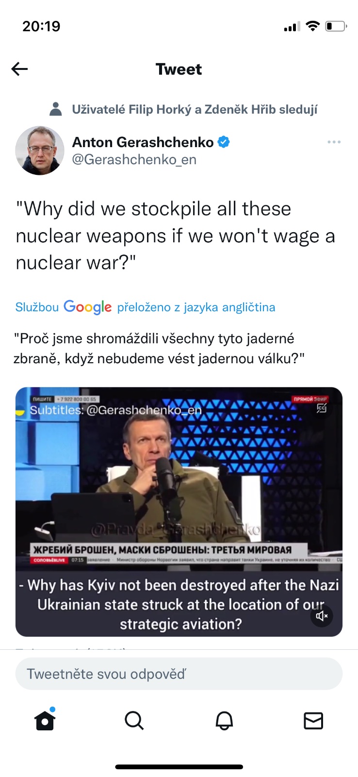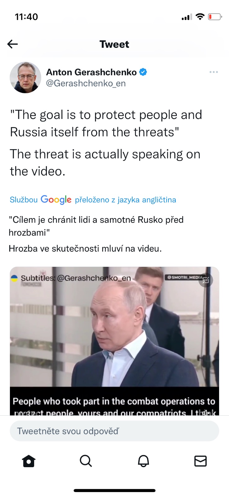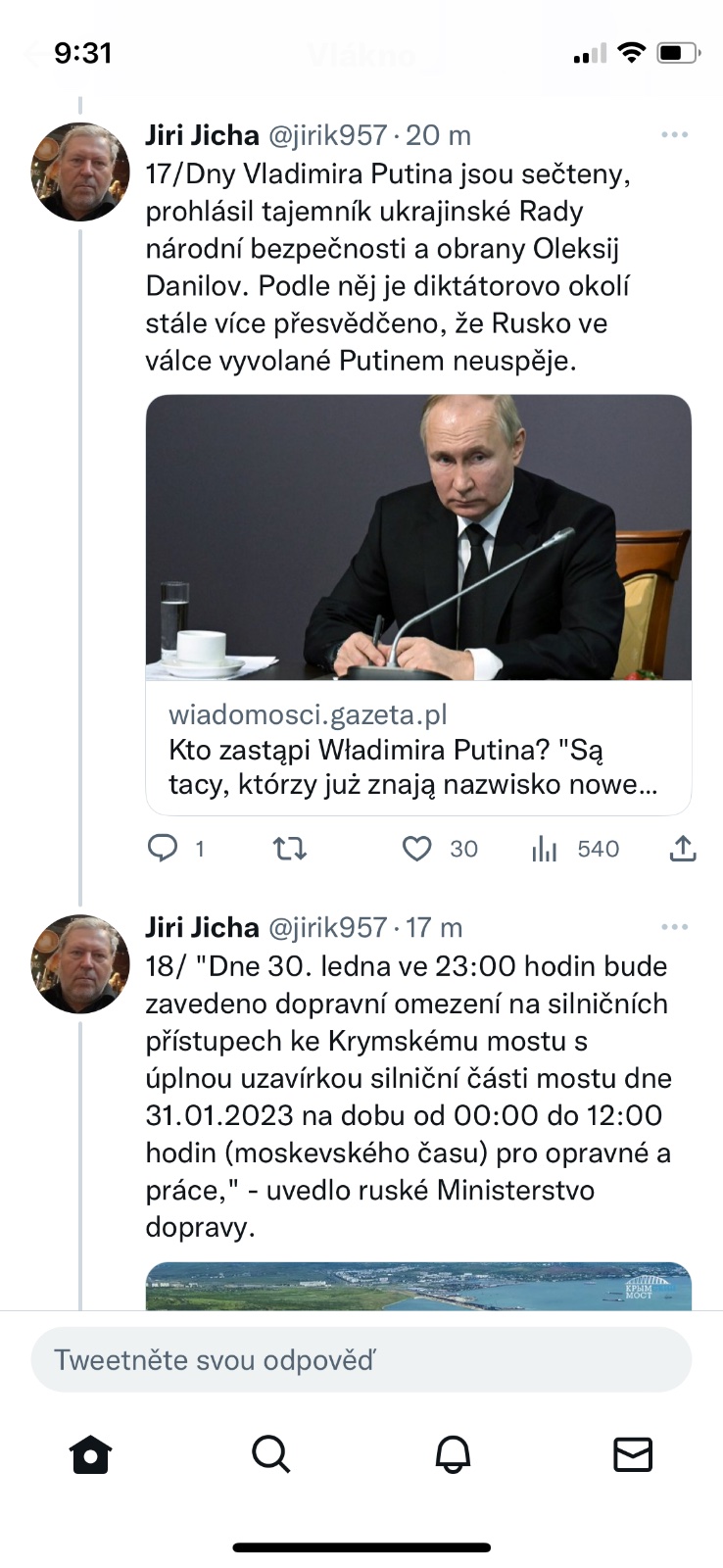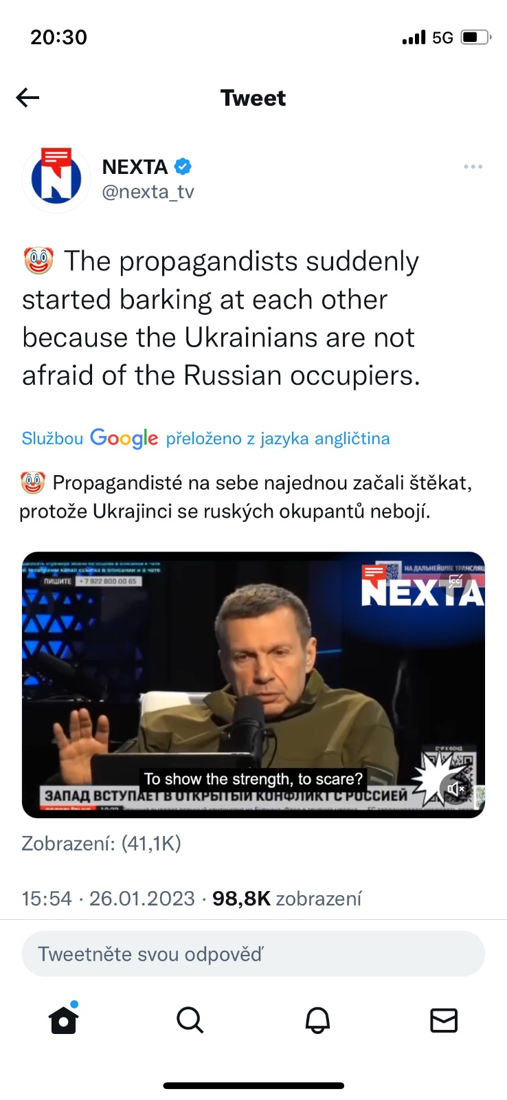 @betelgeuzz Myslíš, že se Putinovi přtížilo zdravotně, tak si připravují půdu to na něj hodit, nebo tomu analytikovi(novináři) jenom ruply nervy a už dál nemůže sledovat propagandistické lži? Žije týpek ještě?
