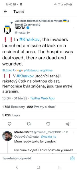 Pro obsáhlost komentářů a špatné načítání a zpětné dohledávání informací zakládám tuto diskuzi. Nově si budeme zprávy psát sem. Dle nových zpráv jsou Rusové v Charkově, kde probíhají boje v ulicích.