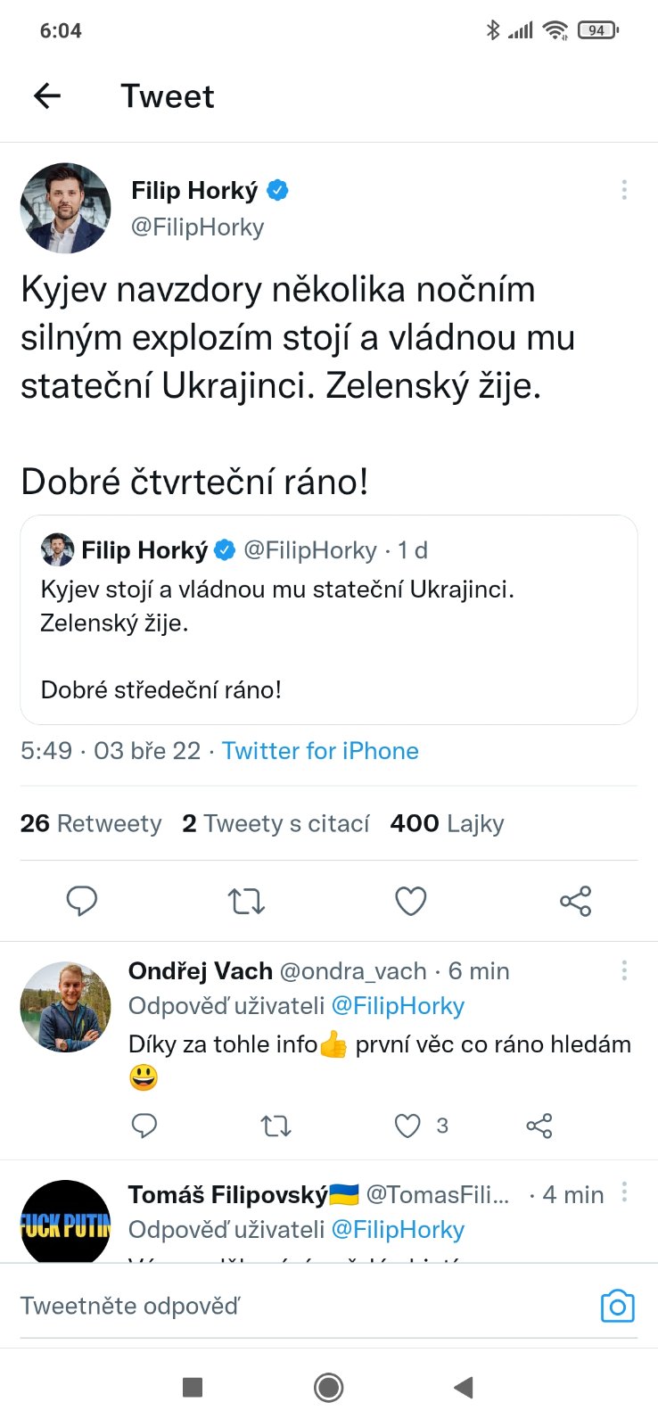 @odula ano, je to celé divné, četla jsem spekulace, že je Putin vážně nemocný, začátek uspěchal, aby to ještě stihl. Pak se také objevuje, že měla být invaze dříve, ale aby nenaštvali Čínu, počkali po olympiádě. Ruská armáda je sice obří, ale zároveň prolezlá korupcí a šikanou, ale jestli až tak... Netuším, co zatím je, nejsem vojenský analytik, dějiny jsem dělala středověk a ne 2. světovou jako Lubomír, takže ani odtud znalosti nemám. Můžu jen souhlasit, že těch chyb je neskutečně moc. A pokud je pravda, co se objevilo dnes, že ztráty doplňuje Putin odvodem kluků z vojenských učilišť... Tak už vůbec nic nechápu