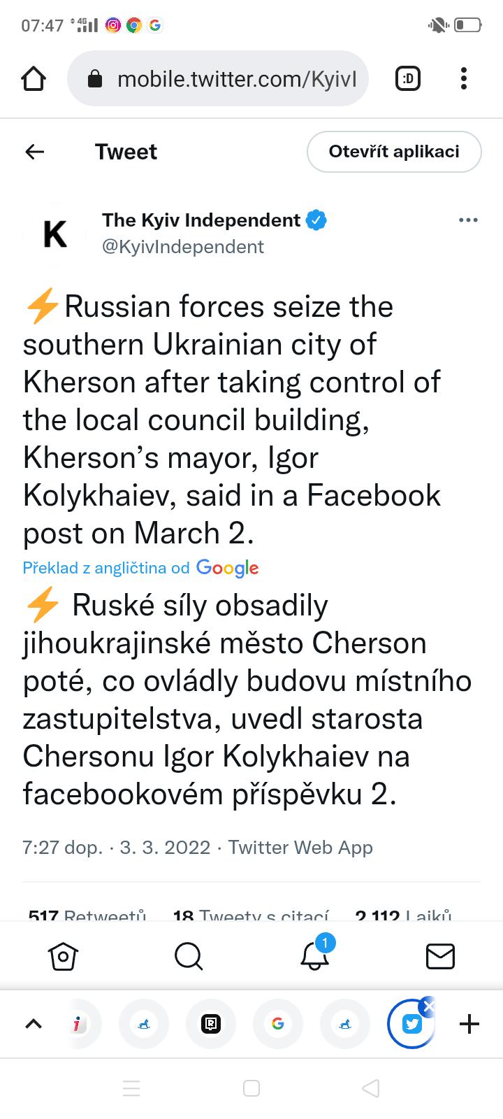 Pro obsáhlost komentářů a špatné načítání a zpětné dohledávání informací zakládám tuto diskuzi. Nově si budeme zprávy psát sem. Dle nových zpráv jsou Rusové v Charkově, kde probíhají boje v ulicích.