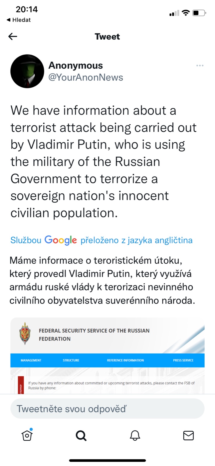 Trochu se bojim dne, az se Anonymous znelibi Ceska Republika, neco mi rika, ze si nekoupime ani kafe z automatu 🙈