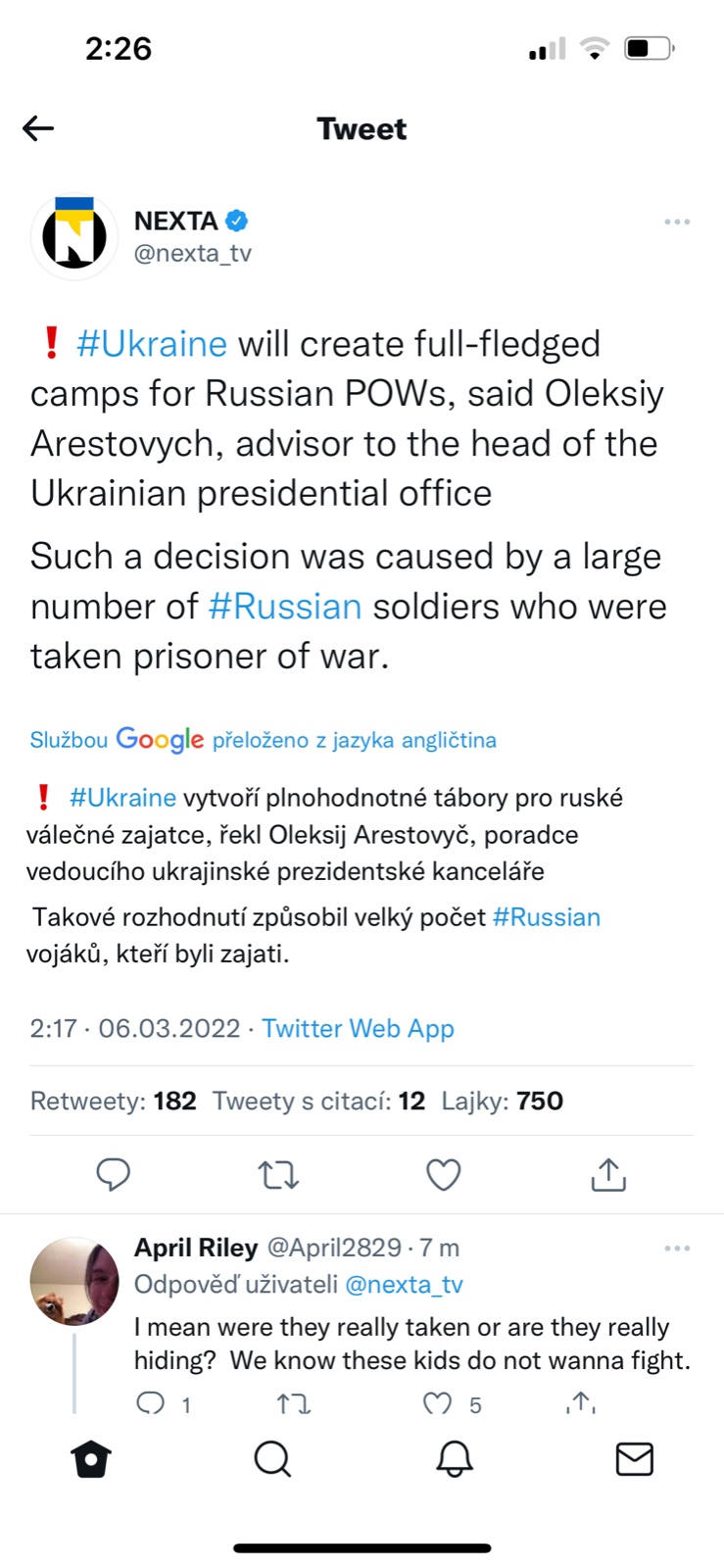 @sudylichozrout Me ty fotky v Blesku rozsekaly. Na jednu stranu jsem si rikala, ze aspon se tem popiracum valky ( jako ze nahrazka za covid, bojuje se na trech mistech a je to jen zasterka k migraci ) otevrou oci! Ale fakt otevrou? Za me uz je to moc. Vim, ze Blesk je Blesk a nebudu toho, kdo to tam dal omlouvat, ale skoro bych rekla, ze neudrzel nervy na uzde a veskere zbytky novinarske etiky sly stranou.