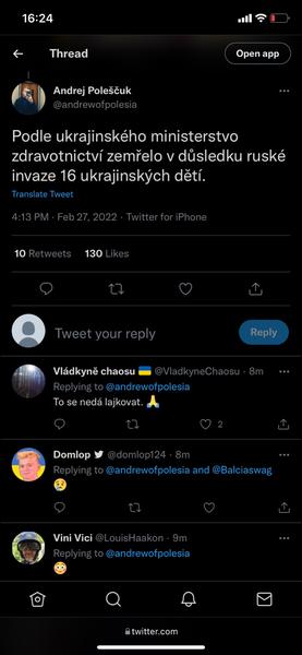 @elencze já se odhodlávám jít aspoň vyžehlit, ale furt jsem přilepená na zprávách a mobilu 🤦🏻 teď jsem si psala s kamarádkou Ukrajinkou, která rodila ve stejný den jako já syna. Byly jsme spolu na pokoji. Má rodiče v Doněcku a není schopná jim jakkoliv pomoct. Zatím posílá jen peníze přes různé známé a dobrovolníky 😔😔