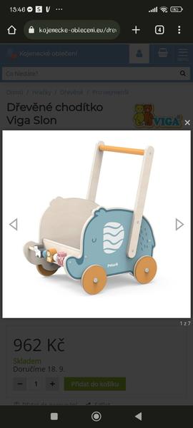 A co třeba koupit odrážedlo? Nějaké vhodné, ne moc široké, my měli funnywheels, to se sice dá používat až později, ale aspoň to má smysl. Nebo prostě něco úplně jiného, co se využije dřív. Na rovinu bych řekla, že chodítko nechceme a pokud ho koupí, tak že ho dáme do sklepa a používat se nebude. Čím dřív si ty hranice nastavíš, tím líp.