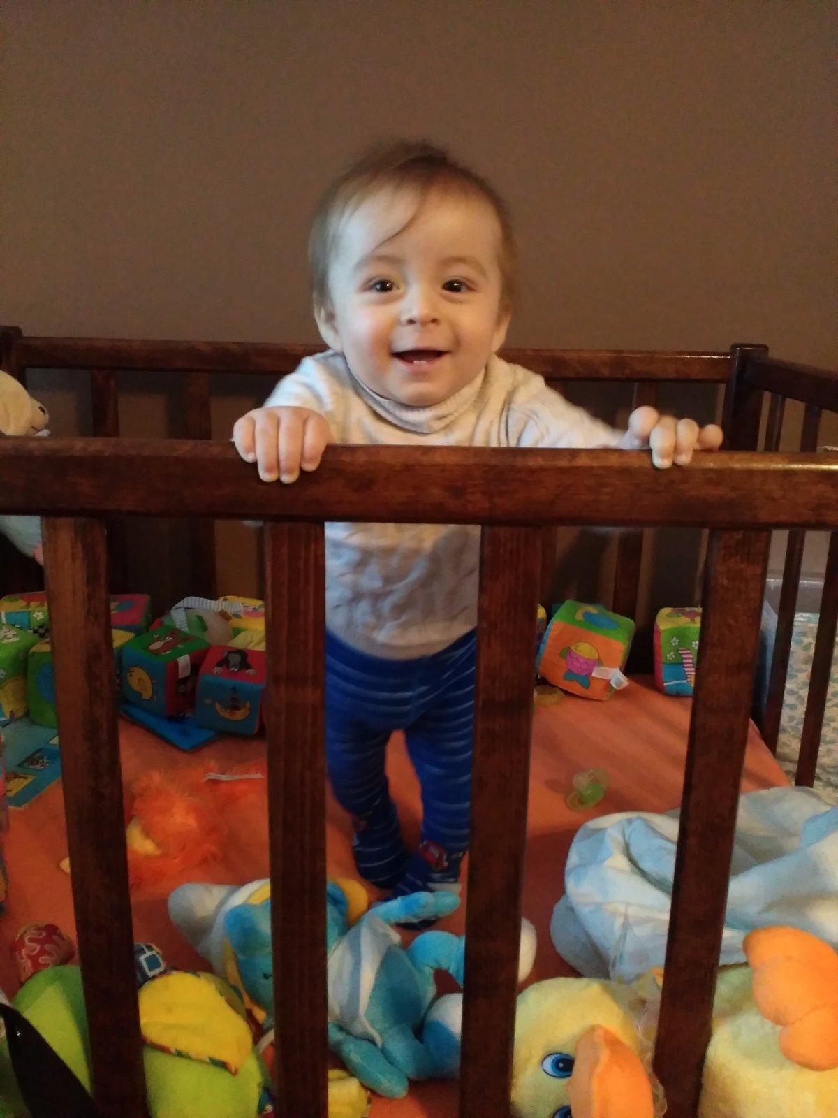 @monikagurthova neboj je to úplně ok 🙂. Malý taky na mě chtěl stát a pořád se na mě zvedal na nohy, no a za 3 týdny .... Viz foto 😀 takže to taky určitě brzo přijde 🙂 my byli na 8 měsíční dneska a malej hrozně "baletí" a prej je to ok, tak to neřeším,..ale malej má málo kg má 70cm a 7,91kg, ale Mudr říkala že když má takovrjej tělocvik není se čemu divit a navíc se mu furt klubou zuby... :-/