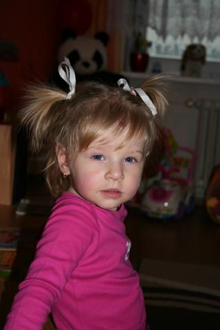 @bocinka vlasy máme husté a rovné po mamince 😀 stejně jako synátor 😀 stříhali jsme je asi 2x na mikádko a ofinku stříháme co 2-4 týdny podle střihu 😉 nejvíc mě bav že ona sama si na vláskách zakláda a sama si říka co mám učesat. Jestli culík nebo copánky či 2 culíky nebo jestli chce jen sponky a nebo čelenku😀 je to sranda 😀 😀 😀 a pořád je vidět že ji rostou nové neboť nahoře má kratké vlasy i kadeřnice říkala že ji neustále houstnou 😉 😀 Jsem ráda za vlasatici 😉 a tady ukázka jak nám rostly vlásenky 😉