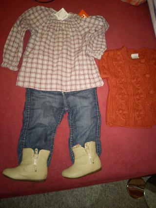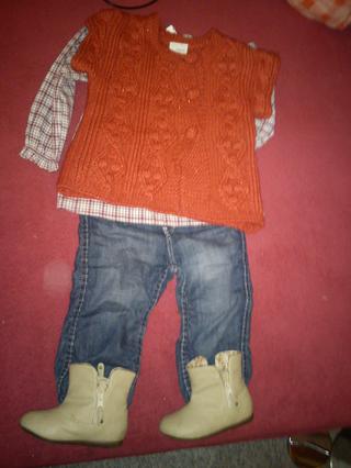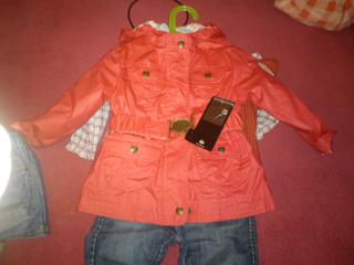 tak děvčata absolvovala jsem nákupy...noo nebudu komentovat, že mě to těžce nebavilo, ale nechala jsem se zavést na smíchov a zatímco náš tatínek jednal, my s Teri vybaveny tišícími prostředky(jídlo, pití dudlík, hadrová plena, knížka)vyrazily na(vy)kupovat.Samozřejmě jak je mým dobrým zvykem, tak s křížkem po funuse. Výprodeje už byly samozřejmě vybrané. V Nextu už ho i sundávaly ze stojanů, ale já apriori nešla po výkupech, tak jsem nakoupila i za normální ceny. Za 3 hodiny jsme byly (obě) hotové a řádně provětraný účet. Ale jsem docela spokojená. Hlavně s některými kousky. Přikládám úlovky. Nejdražší byla ta červená bundaz C&A, stála 998,aůe ale měla jsem od DM 50% kupon, tak nás přišla na 500. Mně teda původně nenadchla,ale když jsme ji malé oblékli, tak byla bombová.