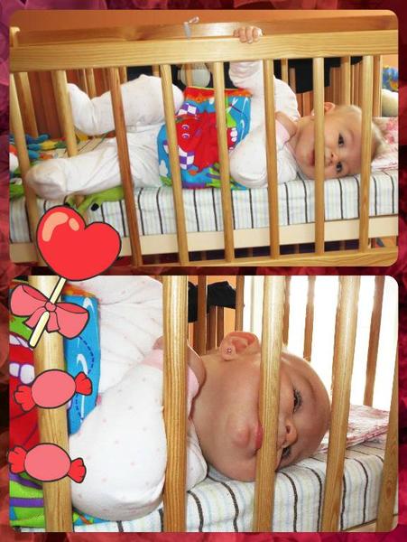 Když už byl malý větší a převaloval se tak se kolébka nakláněla k jedné straně takže neležel na rovině, já tu aretaci neměla a musela jsem to kusama dřeva podkládat. Kiedroňová v Něžné náruči rodičů dokonce píše že zažila v praxi příklad kdy z takové kolébky kterou dědili v rodině měli všichni sleželé hlavičky ☹