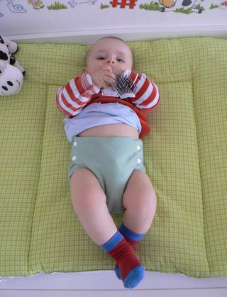 - Vlněné - nejprodyšnější svrchní kalhotky, náročnější na údržbu; aby neprovlhávaly, je potřeba je nalanolinovat. Perou se 1x za několik týdnů, po použití je stačí vyvětrat - obsažený lanolin je totiž voděodolný a antibakteriální.