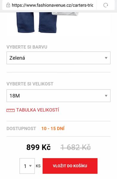 Ono záleží kolik si toho objednáte, dejte si na stránkác Carters češtinu, pak věci do košíku a rovnou uvidíte kolik stojí doprava i clo, vše se platí hned. A pak trvá doprava od 3 do 5 týdnu.