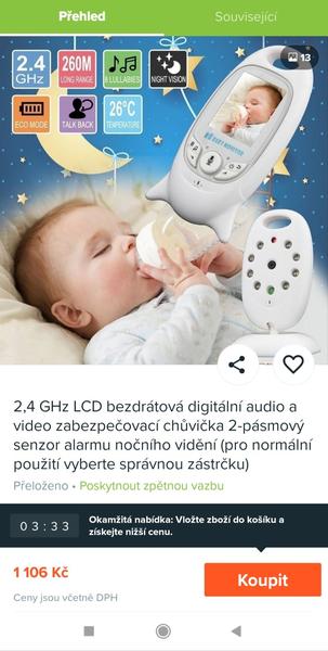 - máte někdo zkušenost s chůvou z Aliexpressu? Ono co si budem, veškerá elektronika, co koupíme v ČR je vyrobená v Číně, jen je mnohonásobně navýšena zdejším obchodníkem. Takže nákupu na tomto webu se nebojím. Když tak prosím o tip.