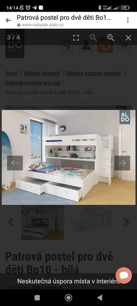 Chystáme se synovi (6) a dceři (4) pořídit patrovou postel. Nechci ale zase úplně "obyčejnou". Chtěla bych nějakou, která má něco navíc (nejlépe stůl). Představujeme si, že investujeme do 20tis (bez matrací). Nejvíce mi do oka padla tato. Nikde ale nemůžu dohledat žádné recenze. Líbí se mi právě ten vysouvací stůl. Nemá někdo zkušenost? Případně máte nějaký tip (nejlépe s odkazem) na postel, se kterou jste spokojeni? Na stole vyloženě netrvam, ale byla bych ráda, kdyby byl součástí. Případně, aby byla alespoň skříň.