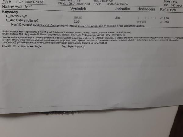 A u CMV máte jen IgG také, že byl. IgM CMV nevidím. Ta věta pod tím napsaná, bohužel nevím.