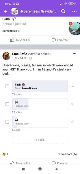 Ahoj holky, ráda bych zde vytvořila diskuzi na téma "hyperemesis gravidarum,, tzn. forma těžkých nevolností v těhu.. Prosím, budu ráda když se zde zapojí PŘEDEVŠÍM maminky, které si tímto prošly takže infuze, hospitalizace, následný režim jak v těhu tak ve stravě apod. Abychom tuto diskuzi rozvedli spíše v duchu osobní zkušenosti přímo s konkrétní diagnozou, protože ty maminky které znají vědí že není zvracení jako zvracení . Ráda bych se informovala a ráda bych touto diskuzí pomohla maminkám které tato diagnóza postihla..