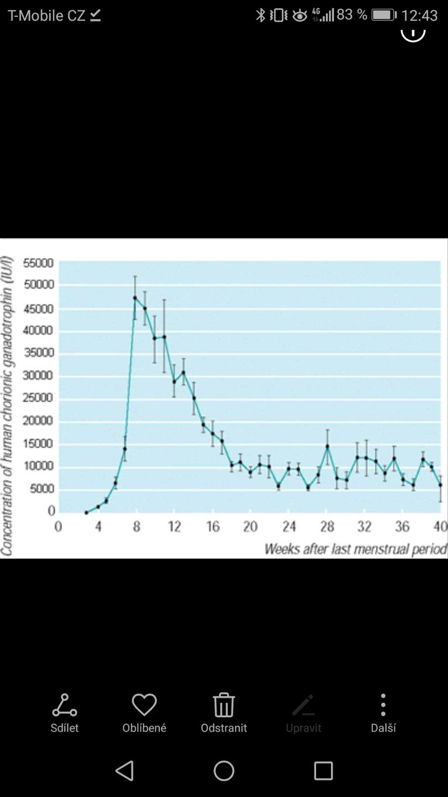 @innocence jj, svitla a brzy vyhasla :(. Teď jsem zas odkázána na postel a kýbl. Když nezvracim, tak je mi hodně zle a mám migrénu. Kamarádka asi na uklidnění mi poslala zajímavý graf, kde ve 13.tt je HCG výš oproti 12.tt, což by mohlo vše vysvětlit.. vložím sem tu tabulku...