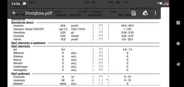 @neomenia jeste dotaz prosim, vidim ze jste zdravotnice... ty vysledky moci chemicky viz obrazek - znamenaji ze je vse ok a tedy je divny ten sediment? ze byl tedy spatny odber? kdyby to znacilo zanet mocovych cest, tak bude neco spatne i v tom oddile moc chemicky? dekuji Vam