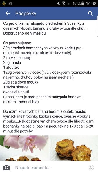 Sušenky vypadají dobře. Já zatím vyzkoušela banánové muffiny a ovesné cookies z této stránky: http://www.studentpoint.cz/312-pro-zdravi/16928... Obojí bylo výborný. Akorát na ty muffiny je lepší mít silikonové formičky. Pak jsem ještě vyzkoušela tento recept: http://kitchenette.cz/clanek/64-ovesne-susenky sušenky mi krásně ztvrdly, mám je v krabičce a jsou výborný.