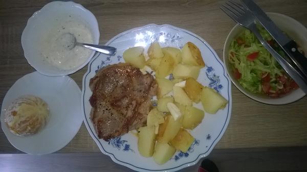 pro predstavu...muj dnesni obed...225g brambor, 50g jogurt, 100g pomerance, krkovicka, okurkoby salat