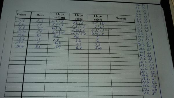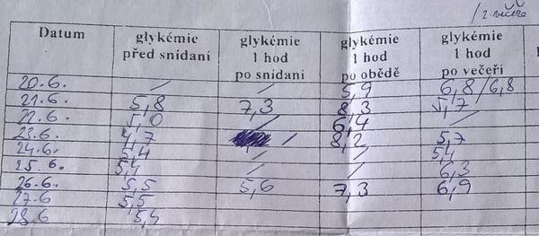a pak pokračování k tabulce 29.6 nalačno 5,9, 30.6. 6,2!!!! a dnes 5,7. :(