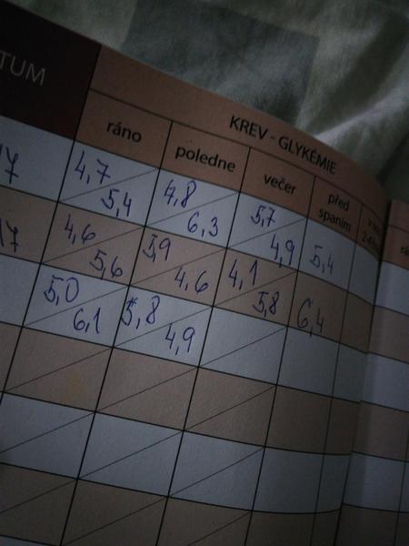@fatal_error Tak podle tabulky tak nejak v limitu, ale je fakt ze jsem sezrala co jsem videla no...hlavne ja strasne rada pecu, takze kolacky, muffiny atd...no idealni strava to nebyla :D Samozrejme je dobre ze veci typu hambac s colou mam fakt zakazany a pres to nejede vlak, jinak by mi chute nedaly..se znam. Dneska v 9 mam termin na diabetologii tak uvidime co mi na to rekne. Blby je ze vysoky hodnoty mam vzdycky rano nalacno, tak uvidime co s tim provedou...