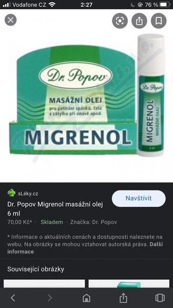 Nikdy předtím jsem na migrény netrpěla. Když je to kritické, dám si 1/2 paralenu, ale nechci se tím zbytečně moc cpát a bolest utlumí jen minimálně. Tlak mám nízký. Hořčík beru nějaké volně dostupné tabletky z lékarny. Dávám chladivý obklad, to trochu pomůže, ale spíš protože jak to mám zmražené, tak necítím tolik bolest. Od přeleželého krku by to možná mohlo být, ale to nevím proč by mě bolelo i čelo. Občas se mi motá hlava a ještě občas zvracím, ale to bude asi prostě ještě dojezd těhotenské nevolnosti. Jedině mě napadlo, že mám třeba zánět dutin 🤔 Mám totiž už asi od 6. týdne zadní rýmu. Nos mám na dýchání volný, ale cítím jak mi stékají vzadu hleny. K doktorovi se chystám, ale raději bych ještě zkusila nějaké bezdoktorové řešení 🙏 Děkuji.