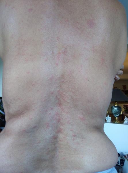 Byla jsem na kožním a paní doktorka mi řekla, že to byla reakce na zkoušení prádla v obchodě. Kdoví jak dlouho a kde to oblečení leží. Tudíž je plné bakterií. Tělo je teď velmi citlivé a byla to reakce. Jelikož jsem těhotná, tak mi nemohla napsat aktivní látku, tak jsem vyšla s mastí LipoBase. Ztratí se to až za min. měsíc. Teď je to už třetí týden a červené flíčky už nemám. Jen mám malé strupíky, které musím neustále mazat, protože se bojím jizev. Ale jinak se nemám ničeho bát a nemá to na nic vliv.