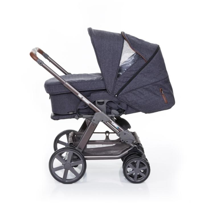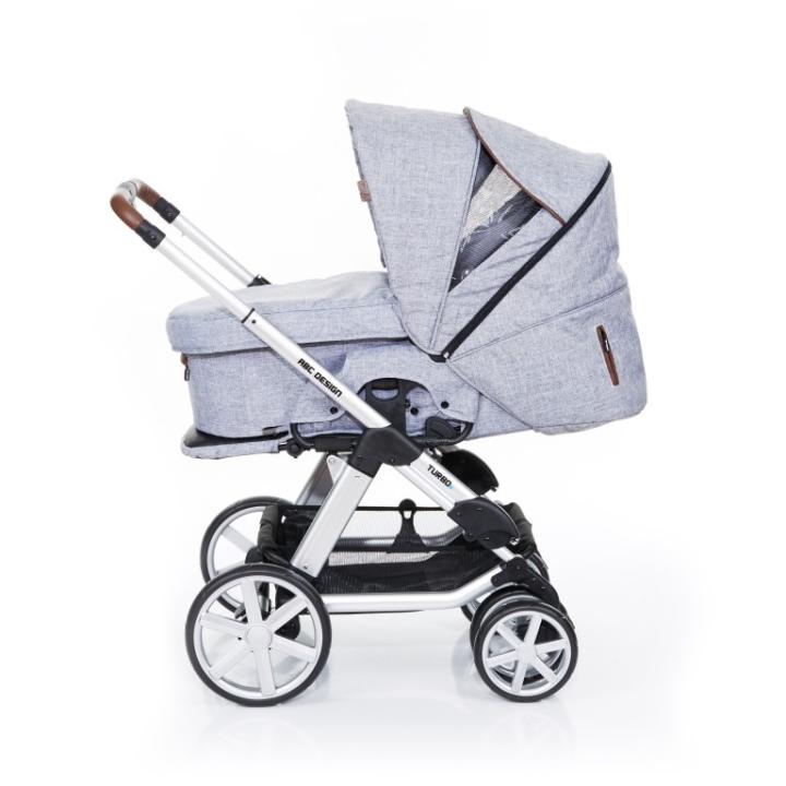 ABC Design Turbo 6 Style je vylepšenou verzí původního Turbo 6S a předchůdcem obnoveného Turbo 6. Jde o robustní kombinaci sportovního kočárku s pevnou vložnou vaničkou. Verze Style vyšla v roce 2016 v modernějších melange potazích, s koženkovou rukojetí i dětským madlem a s dvojitým výklopným kšiltem na stříšce. Přední zdvojená kola má oproti původnímu modelu větší a nově i odpružená. Sedadlo můžeš otáčet a polohovat až do lehu včetně opěrky nožiček, na níž už teď nenajdeš pultík na položení nohou. Prostornou vložnou vaničku k sedadlu připojíš pomocí pásů. Dokoupitelnou autosedačkou nebo autovaničkou Doozy dokážeš z Turbo 6 Style vytvořit cestovní systém.