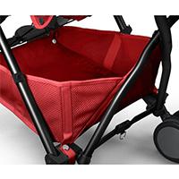 Sedadlo je ergonomicky tvarované a vybaveno odnímatelnou podložkou. Dá se polohovat do 130° náklonu, ale i v nejvyšší poloze mírně nakloněné – je tak vhodné pro starší, samostatně sedící děti. Výhodou je i jeho vyšší umístění, díky čemuž má dítě lepší výhled a zároveň je dále od prašné země. V zadní části zádové opěrky najdeš větrací část s teplo odrážející vložkou (W Thermo Medical System), které napomáhají termoregulaci usazeného děťátka.