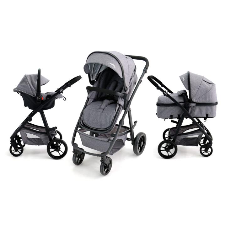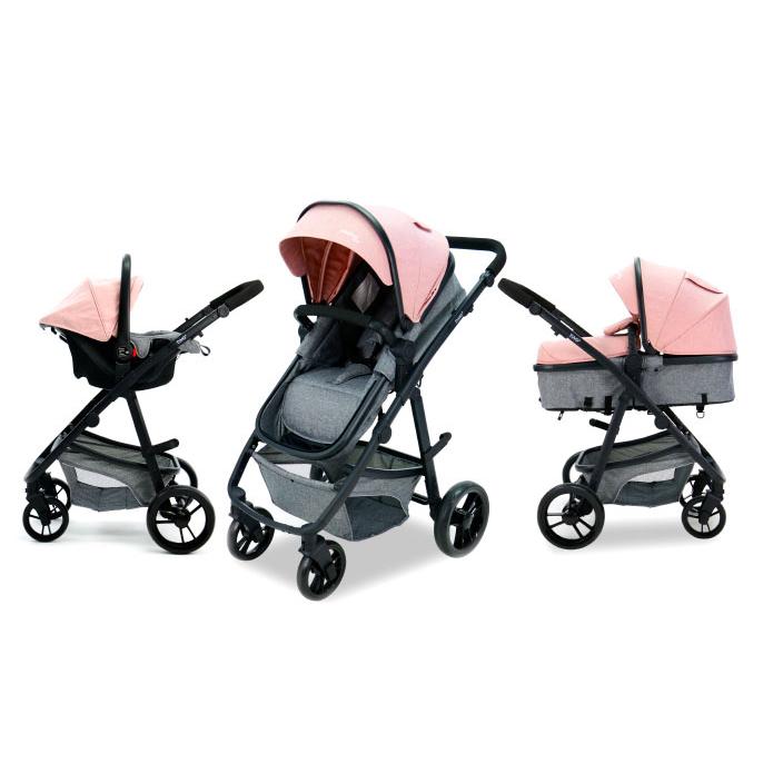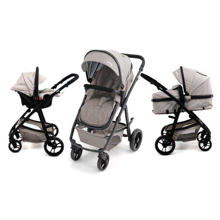V konfiguraci hluboké korby nabízí dostatek prostoru a možnost naklopení hřbetu, a v sedadlové verzi korýtkového typu, můžeš dítě naklonit z lehu až do sedu, za pomoci bočních tlačítek i pásového mechanismu. V trojkombinačním setu je dodávána sladěná autosedačka a také nánožník.
