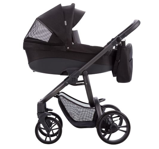 - Součástí kočárku je bohaté základní příslušenství, jako je nánožník, moskytiéra, přebalovací taška a pláštěnka.